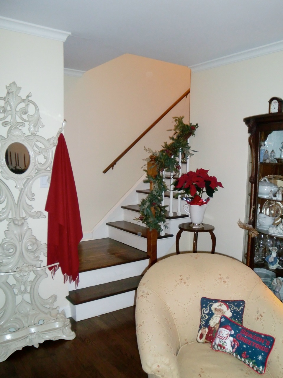 is decorating my home for christmas! i like to “deck the halls” during the weekend after thanksgiving and then enjoy my christmas house all season long. i love to sit and look at the trimmed tree with my husband in the evening when it is dark outside. i always use tiny white lights and like to squint at them and see them blur. i took these pictures last weekend. i appreciate the opportunity to share them.